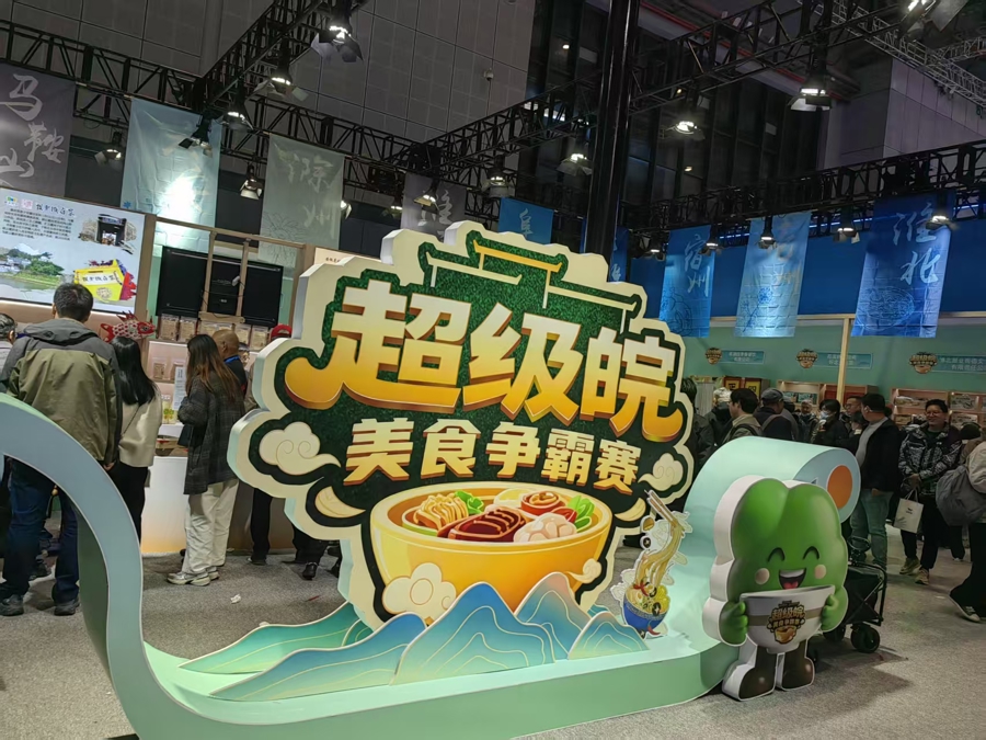 “来到了徽州府,从此爱上了毛豆腐……”在安徽展区,“超级皖”美食板块前围满了美食爱好者。工作人员一边展示长满白色菌丝的毛豆腐,一边将之放入锅中,等待毛豆腐煎至金黄的间隙,还拿来快板唱了一段,现场愈加热闹。“毛豆腐是我们当地的非遗美食,这个卖小吃的担子叫作骆驼担。”工作人员说。本届文博会安徽文化产业综合展共有153家单位参展,较去年增加31家企业,分为“平台载体”“好戏安徽”“文博文创”“皖美相约”“超级皖”美食等8个板块。其中“超级皖”美食板块共有吴山贡鹅大酒店、芜湖四季春、安徽詹氏食品、歙县披云山庄等23家企业参展,给参观者带来地道的安徽美食。