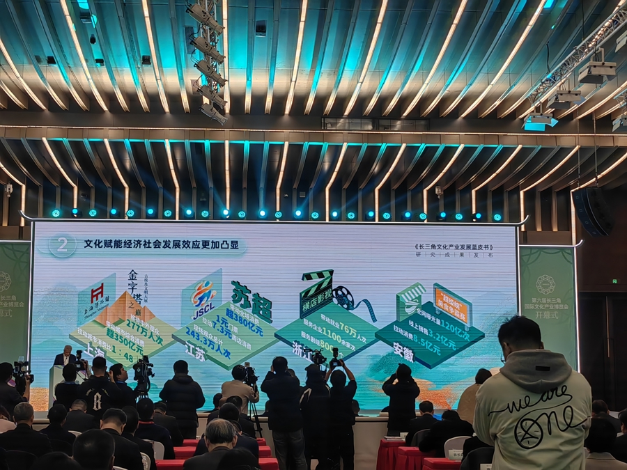 苏超是与上博古埃及文明大展、浙江横店影视服务、安徽“超级皖”美食争霸赛等一起写入《长三角文化产业发展蓝皮书》的文旅商体展融合发展代表项目。开幕活动上,“长三角数智文化产业投资基金”、《长三角文化产业发展蓝皮书》《第三批长三角人文经济典型案例》《2025年度长三角文旅产业重大项目》等一系列重磅合作与成果发布,成为彰显长三角文化产业一体化高质量发展的重要风向标。文化赋能型产品《长三角畅游护照》也在现场首发,这本护照汇聚了三省一市超过150项热门景区景点、爆款演出剧目,以低至一折的惠民价格为大众提供了一份丰富的文旅产品,它的持有者,将会是朋友圈里最懂生活的旅行家。